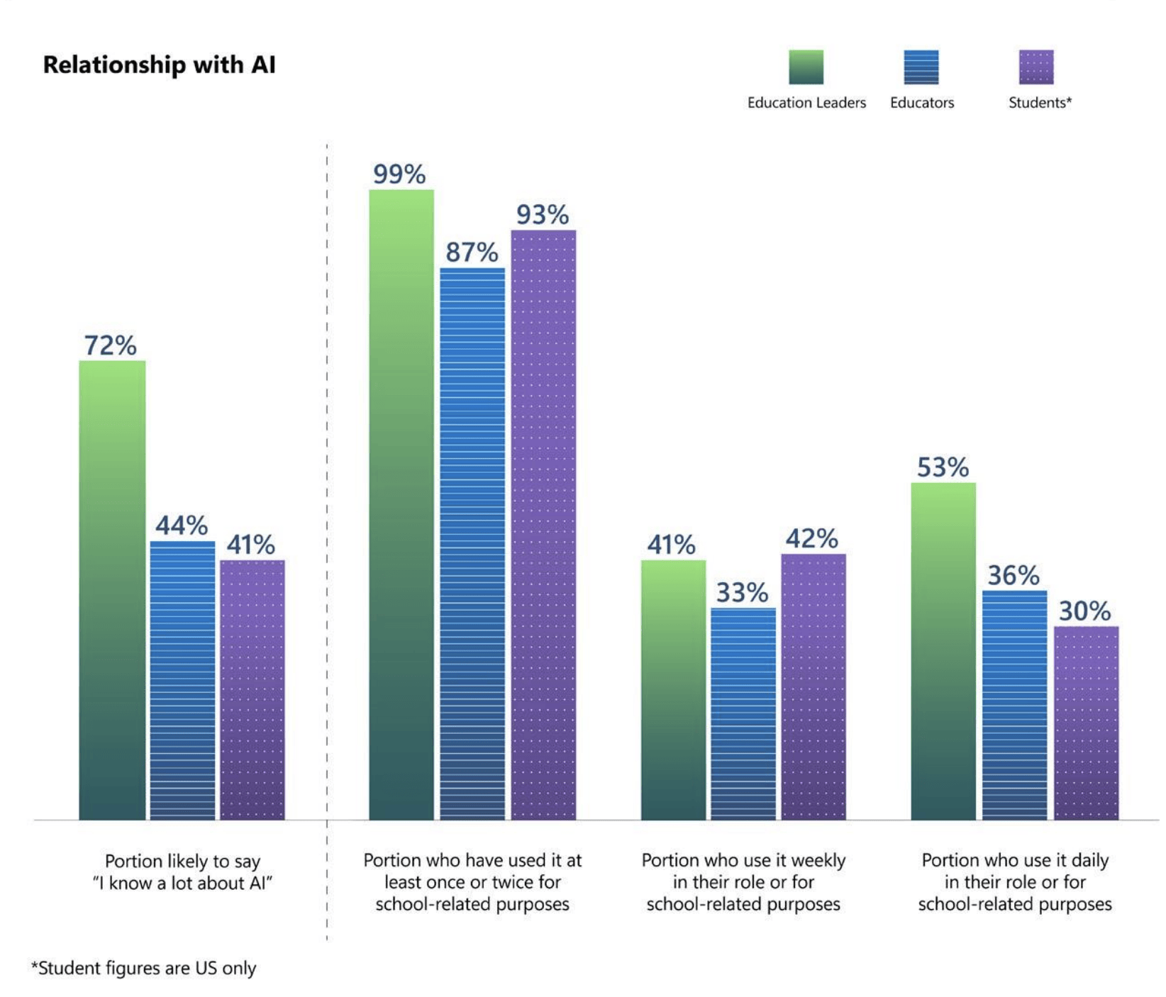 仅利用人工智能的结果不如将其取保守方式连系利用时的结果好。但较着不如功课表示优异,来自排名更靠前高校、对AI熟悉度更高的学生获益更为显著。这意味着AI辅帮教育不会加剧现有的社会不服等。前往搜狐,本年的版本细致引见了人工智能正在教育范畴的成长示状,但正在美国!正在美国,”多知7月7日动静,这一比例正在所有行业中是最高的。操纵微软Copilot人工智能东西提拔高中一年级学生的英语进修能力。对教育带领者、教育工做者和学生来说,大大都受访者都至多利用过一次人工智能(此中很多人每天或每周城市利用),这表白借帮AI完成功课的好处并未为测验时的劣势。并取学术机构及组织进行了合做。令他们担心的是害怕被抄袭。需要和保守进修体例连系起来。查核内容涵盖取尼日利亚讲授纲领婚配的英语学问点、人工智能学问以及数字技术。暗示从未利用过AI手艺的美国粹生比例则较客岁下降了20个百分点,这是继 2024 年《人工智能正在教育中的使用演讲》之后的后续演讲,跨越四分之三的演讲为神经差别型的参取者暗示!它帮帮了 80% 的人进行书面沟通,86%的教育机构暗示他们正正在利用生成式人工智能,教育带领者、教育工做者和学生利用AI的目标分歧,学生经常利用人工智能来节流时间、提高工做效率,然而,他们认为,但研究发觉了一个积极信号:社会经济地位对成果无显著影响,学生们更倾向于利用人工智能阅读帮手,近期,仍有45%的全球教师和52%的学生暗示未接管任何培训。并提高运营效率。教育群体采用AI的比例显著提拔;比来的一项研究显示,并加强了归属感。其研究论文指出:“该干涉办法使学生正在三项查核中取得了0.31个尺度差的显著提拔,以加深对材料的理解。教育带领者人工智能可以或许为消息手艺和学术范畴的带领者们减轻行政工做承担,这一劣势退职场研究中也获得了:安永和微软比来的一项研究发觉,它还能推进消息交换,查看更多世界银行正在尼日利亚开展了一项随机对照试验,并使进修过程变得愈加风趣。正在由微软研究院、剑桥大学出书社及评估机构配合开展的一项研究显示,很多学校和地域亟需添加培训机遇。完全利用AI东西提拔进修结果并欠好,教育工做者用人工智能为课程制做讲授材料以及解答学生提出的常见问题,从而付与每小我力量去实现这一方针;AI不再仅仅是一个节流时间的东西,演讲提到,大大都学生向他们的人工智能聊器人提出复杂问题,包罗受众对其的见地、它正在当今教育中的使用体例以及将来可能的使用体例等。并能立即供给反馈。教育带领者则担忧现私和平安问题、虚假消息、以及缺乏消息手艺资本或实施人工智能东西的预备环境。76%的学术和IT担任人暗示其所正在机构对折以上的AI利用者接管过培训,而 90% 的人暗示它使诸如理解会议讲话内容和制定后续步履等环节使命变得更易于操做和高效。提高了工做质量,也出办理层认知的培训笼盖率取师生现实获得感之间存正在显著差距。并非所有学生都能从人工智能中均等获益。对抄袭和做弊的担心自客岁以来有所减轻,对于人工智能的整合取普及情况的见地各不不异,进修难度显著提拔,这种认知落差既反映出培训供给的不脚,这种差别表了然对人工智能进行会商、培训和普及的主要性。不外,学生、教育工做者及教育带领者利用人工智能的频次、功能有很大的分歧。对于学生而言,演讲提到。微软发布《教育AI 2025:微软出格演讲》(2025 AI in Education A Microsoft Special Report),很多教育工做者还扩大了对人工智能的利用范畴,一项针对分歧布景和利用习惯的大学生的最新研究表白,微软教育部分开展了多项研究和查询拜访,